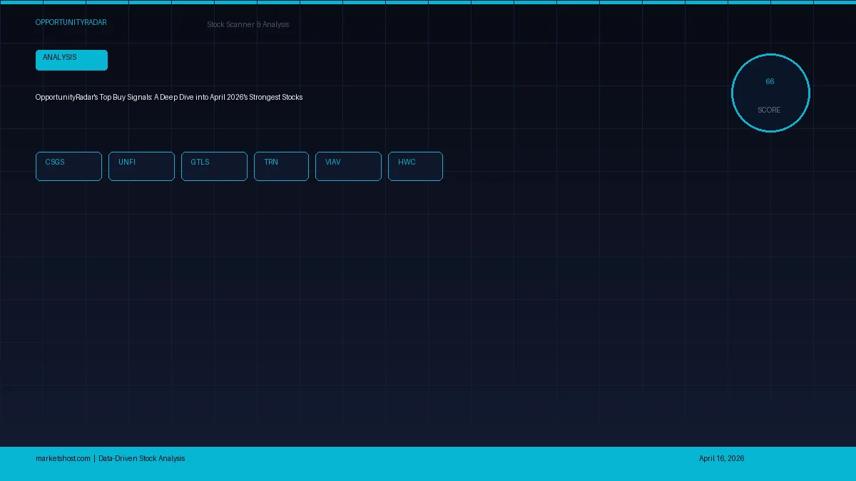 Explore top stock buy signals for April 2026 identified by OpportunityRadar. Data-driven analysis of CSGS, UNFI, GTLS, TRN, and VIAV.